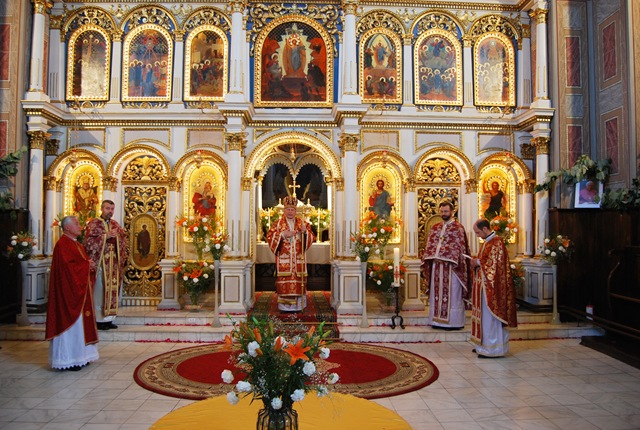 DSC_0545 În Duminica Sfintelor Rusalii, a Pogorârii Sfântului Spirit, Catedrala greco-catolică din Lugoj şi-a sărbătorit hramul. Încă de sâmbătă seara, programul de praznic a început cu Vecernia cântată de Surorile Baziliene şi un grup de tineri.