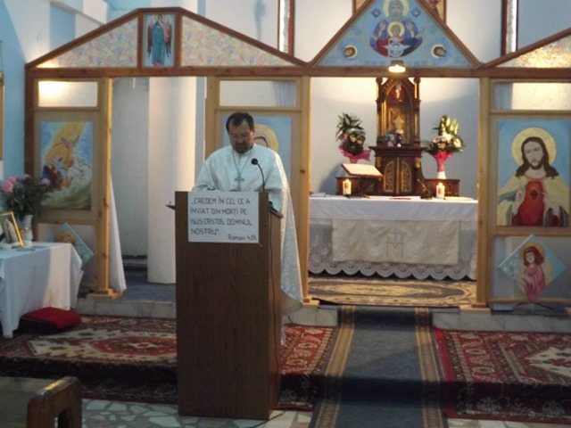 Rvs. Pr.Dr. Marius-Petru Pop, consilier eparhial şi secretar episcopal ne-a vorbit în predică despre Învierea lui Isus, despre femeile mironosiţe şi despre Maica Sfantă .
