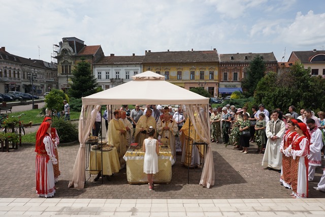 După Sfânta Liturghie s-a pornit în procesiune înconjurându-se Catedrala apoi a urmat sfinţirea spicelor de grâu şi a ofrandelor aduse cu ocazia acestui praznic, care au fost frumos pregătite şi aduse pe mesele aşezate pe platoul din faţa catedralei. Fiecare credincios a primit câte un colac cu această ocazie şi spice de grâu.