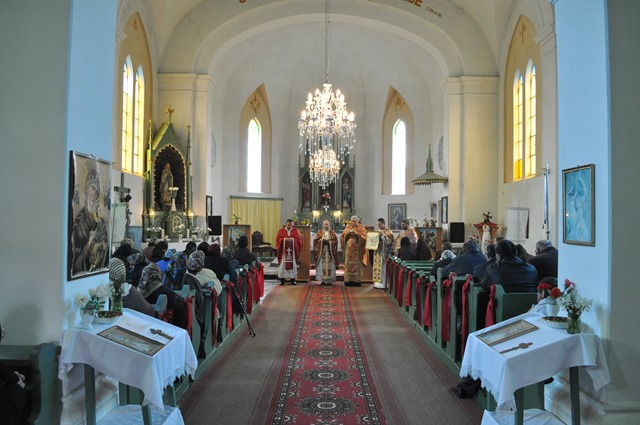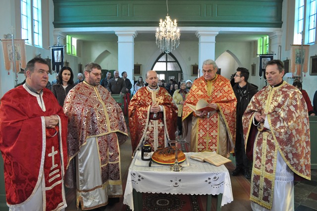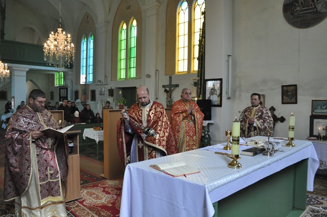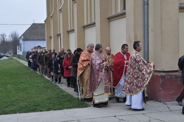 După Sfânta Liturghie, preoţii concelebranţi, oficialităţile locale şi credincioşii au făcut o procesiune în jurul bisericii.