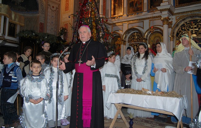 După scenetă, P.S. Alexandru Mesian a mulţumit tuturor celor implicaţi în alcătuirea programului din Seara de Ajun de la Catedrală.
