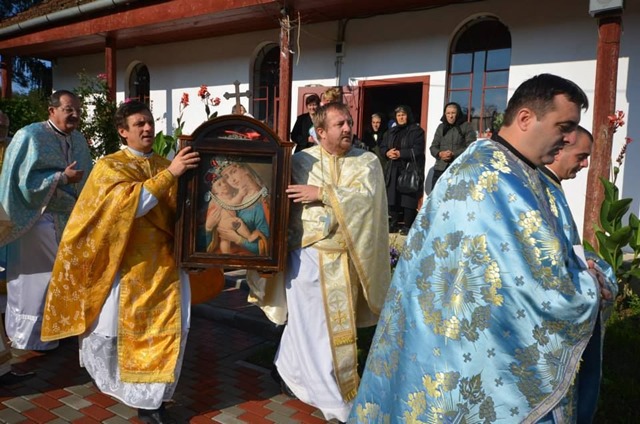 ”42 la sută era șomajul, pe atunci. Episcopul m-a trimis aici iar oamenii se bucurau că aveau preot maramureșean” – spune părintele. În 2000 toamna a deschis procesul pentru biserica veche dar a făcut și primele demersuri pentru construirea unei biserici noi. În 2001 era sfințirea pietrei de temelie iar în 2004 deja era terminat demisolul. Era fără încălzire, desigur – două ierni au stat acolo fără încălzire. Dar au avut unde ține slujbă. În 28 noiembrie 2004 au avut aici prima slujbă cu episcop – cu intrare festivă și toate cele. Iar preotul știe data din cap – nu trebuie să caute în vreun calendar. Pentru că a rămas ca moment de căpătâi în istoria parohiei sale.