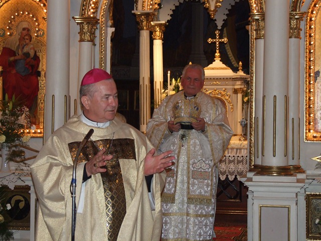 În încheierea celebrării liturgice, fiind invitat la cuvânt, Înalt Preasfinţitul Ioan Robu a vorbit despre rolul Conferinței Episcopale. “La aceste întâlniri – a spus Excelenţa Sa – dacă discutăm despre unele sau altele din viaţa noastră bisericească, ceea ce creşte între noi este comuniunea, legătura sufletească. Simțim de fiecare dată că suntem într-adevăr Una, Sfântă, Catolică şi Apostolică Biserică. Această comuniune de altfel creşte nu numai atunci când suntem în conferință discutând între noi diferite probleme, ci această comuniune, această legătură sufletească creste atunci când împreună Noi, Păstorii Bisericii împreună cu credincioșii ne adunăm (ca în seara aceasta) la Sfânta Liturghie. Creste nu numai comuniunea dintre noi toţi, ci creşte mai presus de toate comuniunea noastră cu Dumnezeu căci in asemenea momente de rugăciune şi inima noastră şi gândul nostru se face rugăciune.”