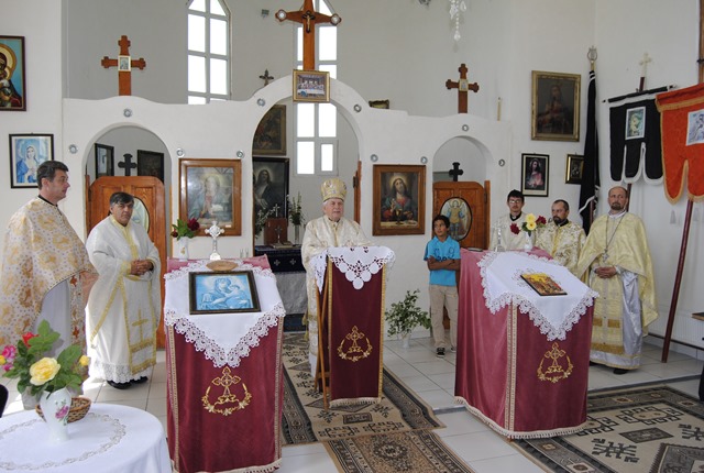 La 25 octombrie 1998 P.S. Alexandru Mesian a efectuat prima vizită pastorală în această localitate. Sfânta Liturghie s-a celebrat în casa unui credincios. S-a încercat în mai multe rânduri recuperarea bisericii și a casei parohiale, dar nu s-a reușit. La 30 iunie 2000 în urma cumpărării unui teren, s-a sfințit locul de biserică și s-a pus piatra de temelie. La 26 octombrie 2003 biserica a devenit funcțională prin sfințirea lucrărilor terminate la acel moment.