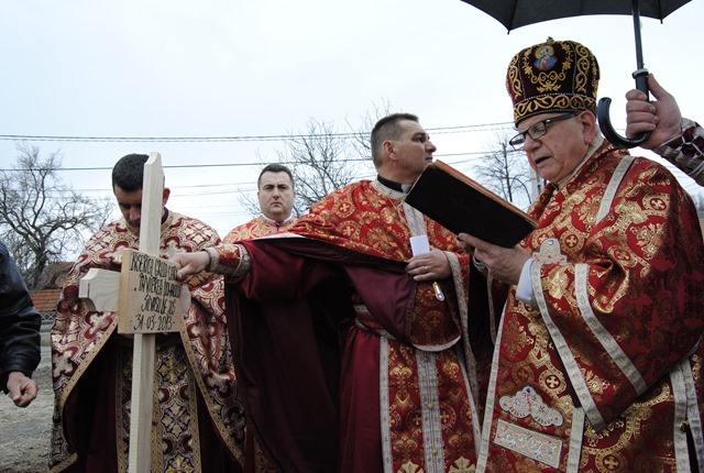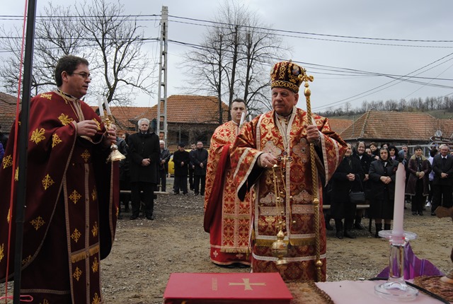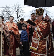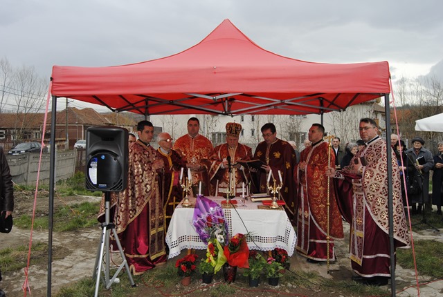 Ceremonia a început la orele 10.30 cu oficiul sfinţirii apei, urmat de sfinţirea locului de biserică, a credincioşilor şi a pietrei de temelie a noii biserici şi implantarea crucii.