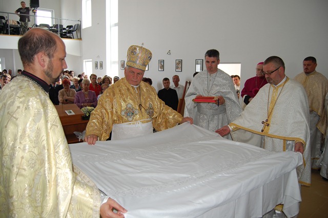 La sfârşitul Sfintei Liturghii, Preasfinţitul Alexandru a dat citire mesajului Preafericirii Sale Lucian Mureşan, Arhiepiscop Major de Făgăraş şi Alba-Iulia, care nu a putut fi prezent la acest eveniment. Redăm un fragment: „Îi cer Preasfintei Treimi, Dumnezeu Unul şi întreit în Persoane, să binecuvânteze biserica aceasta, să binecuvânteze osteneala tuturor acelora care au contribuit pentru ca ziua aceasta să fie măreaţă. Să reverse Dumnezeu haruri din belşug peste voi toţi, peste preoţi şi peste Episcopul vostru.” De-asemenea Prea Sfinţitul Alexandru a mulţumit celor care au transmis mesaje printre care amintim pe Arhiep. Antonio Matiazo de la Padova şi pe ÎPS Timotei, Arhiepiscop al Aradului, a mulţumit tuturor participanţilor, corului de la Lugoj, celor care şi-au adus contribuţia la edificarea acestui locaş de cult. A mulţumit în mod deosebit Vicarului Provincial Padova P. Giovanni Voltan OFMConv, care a trimis relicva într-un frumos relicvariu însoţit de documentul care atestă autenticitatea relicvei. A salutat preoţii prezenţi şi nu în ultimul rând l-a felicitat pe Prărintele paroh.