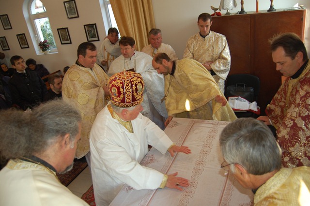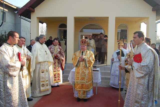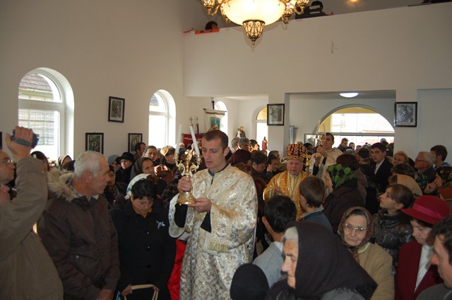 Sfânta Liturghie arhierească a fost pontificată de P.S. Alexandru Mesian. Alături de Prea Sfinţia Sa au concelebrat: Mons. Angelo Narcis-Pop, Vicar general al Eparhiei de Lugoj, pr. Marius Pârvu, Protopop de Sânicolau Mare, mons. Mihai Vereş, paroh la Uivar, pr. prot. on. Ioan Grad, paroh la Darova, pr. Dumitru Crişan, paroh la Comloşu Mare, pr. Ioan Dunca, paroh la Parţa, pr. Gheorghe Tomoioagă, paroh la Bocsig, pr. Gheorghe Ardelean, paroh la Periam şi pr. Cristian Olariu, paroh la Balinţ.