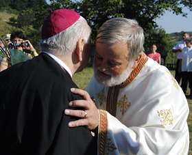 La sosire, PS Alexandru a fost întâmpinat în faţa lăcaşului de cult cu Sfânta Cruce şi Sfânta Evanghelie de către pr. Aurel Bendariu, parohul locului, împreună cu un sobor de preoţi din protopopiat.