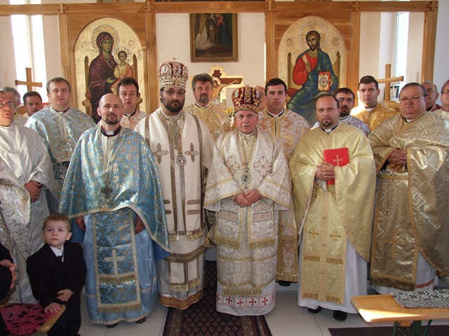 Sfânta Liturghie arhierească, a fost pontificată de P.S. Alexandru şi P.S. Mihai, alături de Prea Sfinţiile Lor, în jurul sfintei mese a altarului aflându-se: Mons. Angelo Narcis-Pop, Vicar general al Eparhiei de Lugoj, pr. Prot Bindea Silviu, Protopop de Orăştie, pr. prot. Călin Mihălţan, Protopop de Alba-Iulia, pr. Dobrin Adrian de la Alba-Iulia, pr. dr. Mitrofan Ioan de la Blaj, pr. Jean Baptiste de la Blaj, pr. Florin Micta de la Maieru (Bistriţa Năsăud), pr. Iosif Mareș din Austria pr. Lucian Oltean de la Feisa-Blaj, pr. Nicolae Didi de la Turdaş, pr. Ioan Lazea de la Cluj, pr. Alexandru Gînţa de la Mărtineşti, pr. Mihai Enyedi de la Geoagiu, pr. Aurel Rafiliu de la Romos, pr. Viorel Codrea de la Cugir, pr. Mircea Costa de la Rapoltu şi pr. Daniel Roman de la Vinţu de Jos.
