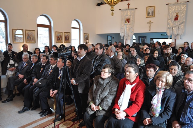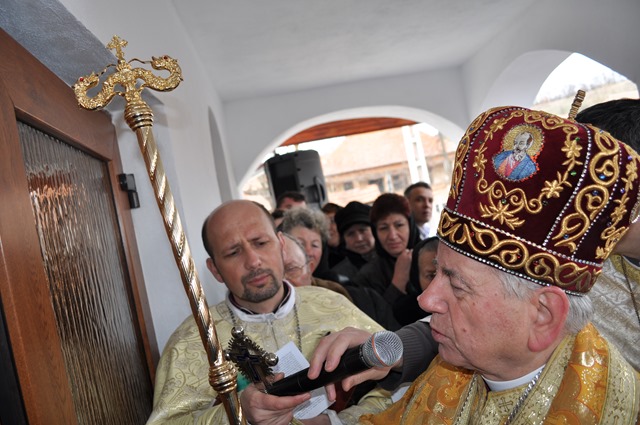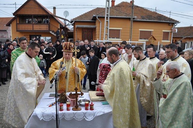 Ceremonia religioasă a început la orele 10.00 cu oficiul sfinţirii apei, desfăşurat în faţa bisericii, după care a urmat binecuvântarea noului lăcaş de cult, prin ungerea zidurilor exterioare şi interioare cu Sfântul şi Marele Mir, în formă de cruce, şi prin stropire cu apă sfinţită. Apoi a urmat sfinţirea în interior: iconostasul şi masa altarului în care au fost aşezate moaşte ale Sfintei Marta. Mons. Angelo-Narcis Pop a dat citire Hrisovului. Redăm câteva informaţii din acest document: