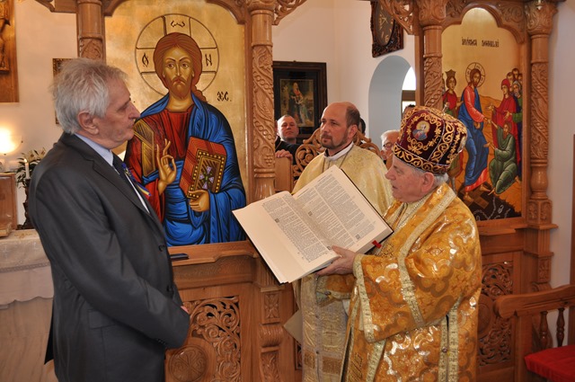 În semn de mulţumire şi de apreciere, pr. paroh Silviu împreună Prof Sigismund Duma i-au dăruit Prea Sfinţitului Alexandru o icoană cu Învierea Domnului. La rândul Său, P.S. Alexandru a dăruit d-lui Sigismund Duma, „Biblia de la Blaj”, Ediţia Jubiliară 2000.