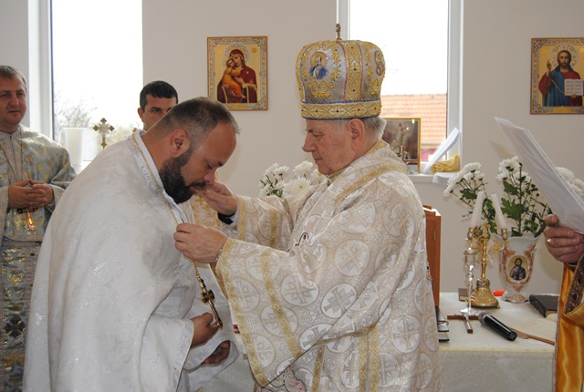 Ierarhul a fost întâmpinat cu Sfânta Cruce şi Sfânta Evanghelie de către pr. Nicolae Didi, parohul locului. Tinerii i-au oferit Ierarhului buchete de flori, pâine şi sare.