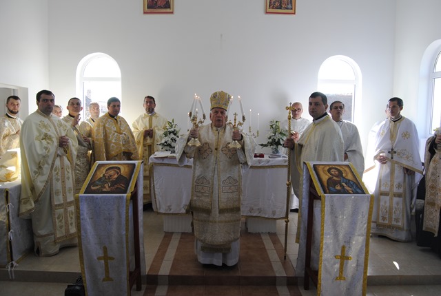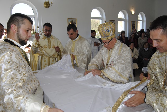 Sfânta Liturghie arhierească a fost pontificată de P.S. Alexandru Mesian. Alături de Prea Sfinţia Sa au concelebrat: pr. Doinel Preda, protopop de Haţeg, pr. Adrian Nagy, protopop de Valea Jiului, pr. Flavius Jurca, protopop de Sarmisegetuza precum şi preoţi din protopopiatele: Haţeg, Sarmisegetuza, Hunedoara, Valea Jiului şi Lugoj. Răspunsurile la Sfânta Liturghie au fost date de corul parohiei „Imaculata” din Deva dirijat de d-na Marcela Dragoş.
