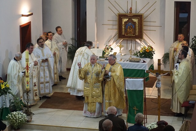 Răspunsurile la Sfânta Liturghie Arhierească au fost date de corul parohiei, dirijat de d-na Gerda Chişărău. La sfârşitul sfintei Liturghii s-a rostit rugăciunea Sfântului Părinte Papa Francisc pentru jubileul milostivirii.