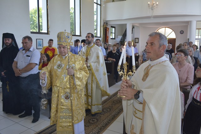 Programul a început cu rugăciunea Sfântului Rozar. Sfânta Liturghie a fost pontificată de P.S. Alexandru. Au concelebrat: pr. Florian Gui, pr. prot. Ovidiu Cozmuţa, pr. ieromonah Atanasie Muntoni, stareţul mănăstirii „Prea Sfânta Treime” şi pr. Cristian Chişvasi, parohul locului. Răspunsurile la Sfânta Liturghie au fost date de un grup de tineri de la liceul „Don Orione”, Oradea împreună cu un grup de absolvenţi teologi şi călugări.
