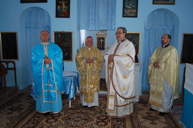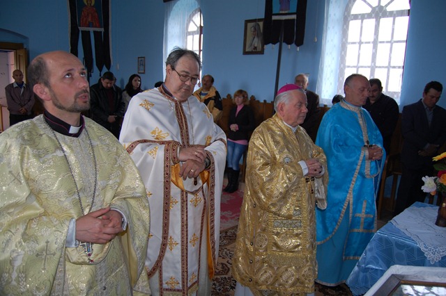 La Sfânta Liturghie Arhierească, alături de Prea Sfinţitul Alexandru s-au aflat: Mons. Angelo Pop vicar general, Micu Ceciliu şi pr. Oltean Decebal, parohul locului.