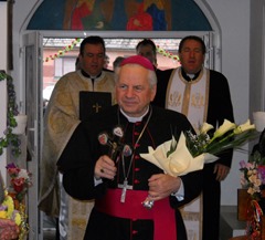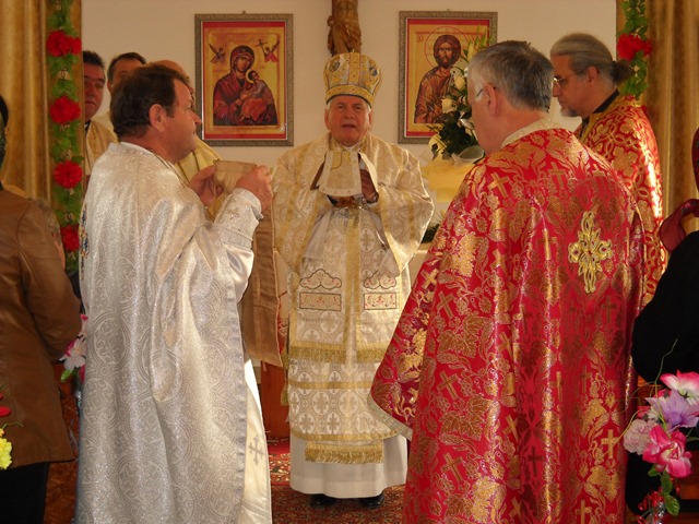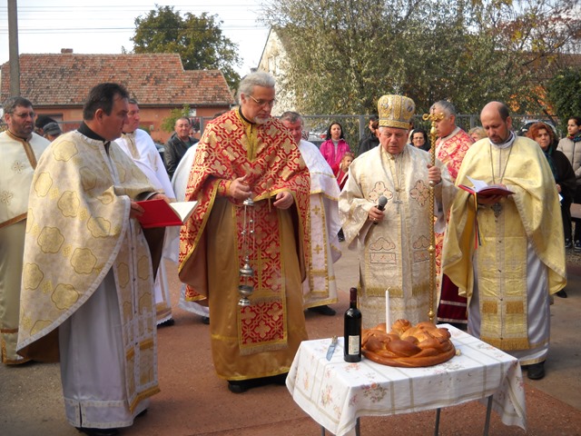 La sosire P.S. Alexandru a fost întâmpinat de pr. Marius Pârvu, protopop de Sânicolau Mare, de pr. Ilie Tomioagă, parohul locului şi de primarul comunei dl. Ioan Sima şi de numeroşi credincioşi, cu tradiţionala pâine şi sare precum şi cu buchete de flori.