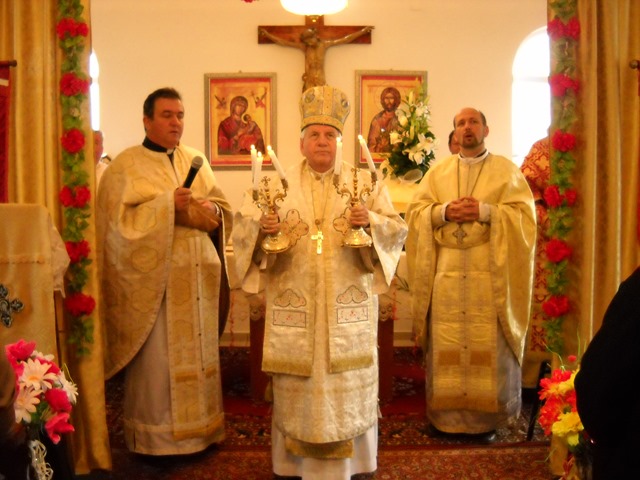 Sfânta Liturghie arhierească a fost pontificată de P.S. Alexandru Mesian. Alături de Prea Sfinţia Sa au concelebrat: Mons. Angelo Narcis-Pop, Vicar general al Eparhiei de Lugoj, pr. Marius Pârvu, Protopop de Sânicolau Mare, pr. prot. on. Ioan Grad, paroh la Darova, pr. Dumitru Crişan, paroh la Comloşu Mare, Pr. Ieronim Romocea, paroh la Uivar, pr. Gheorghe Tomoioagă, paroh la Bocsig, pr. Traian Ardelean, paroh la Periam, pr. Gheorghe Berciu, paroh la Cenad şi pr. Ilie Tomoioagă, parohul locului.