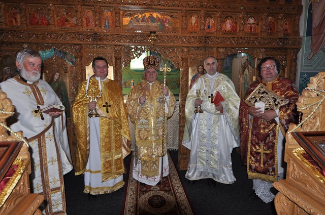 Alături de Prea Sfinţitul Alexandru, la masa Sfântului Altar au concelebrat: Mons. Angelo Narcis Pop, Vicarul General al Episcopiei de Lugoj, Rev. Pr. Tutaş Nicolae – Protopopul Reşiţei, Rev. Pr. Ic. Stavr. Bendariu Aurel – Protopop Onorific şi paroh Doman, Pr. Ic. Stavr. Hasciar Iulian- Paroh Scăiuş, Pr. Costinar Viorel- Paroh Târnova, Diac. Negrău Peida- Biserica Romano-Catolică.