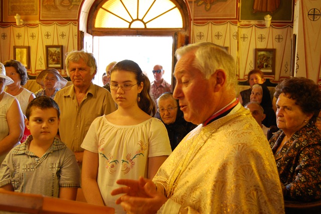 În continuare, Părintele Protopop Teodor Baba a rostit un cuvânt, amintind credincioşilor rolul Episcopului Eparhial, care îl reprezintă pe Mântuitorul Isus Cristos. „Episcopul în fiecare parohie” a afirmat Părintele Protopop, „sfinteşte, învaţă şi conduce, fie că este sau nu prezent fizic. De aceea putem să spunem că de fapt Episcopul este mereu prezent în mijlocul nostru tocmai în virtutea înaltei responsabilităţi pe care o are de la însuşi Mântuitorul nostru Isus Cristos”. Părintele protopop a subliniat rolul vizitelor pastorale episcopale, afirmând că acea parohie este chemată să devină mai dinamică, mai vie, mai conştientă ca e o adevarată comoară în şiragul parohiilor care alcătuiesc o episcopie.