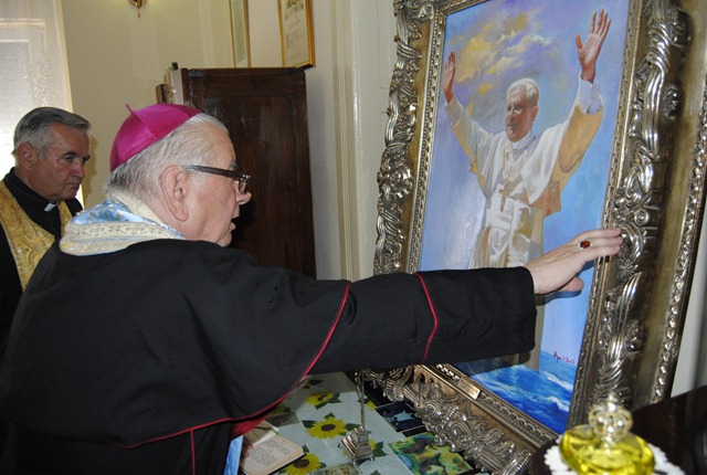 Al doilea moment al vizitei pastorale s-a desfăşurat la casa parohială care a fost de curând renovată. După Sfeştanie, Prea Sfinţitul Alexandru a primit din partea Părintelui Nicolae şi a consiliului parohial, un tablou cu figura Sfântului Părinte Papa Benedict al XVI-lea, pictat de Ștefan Popa-Popas.