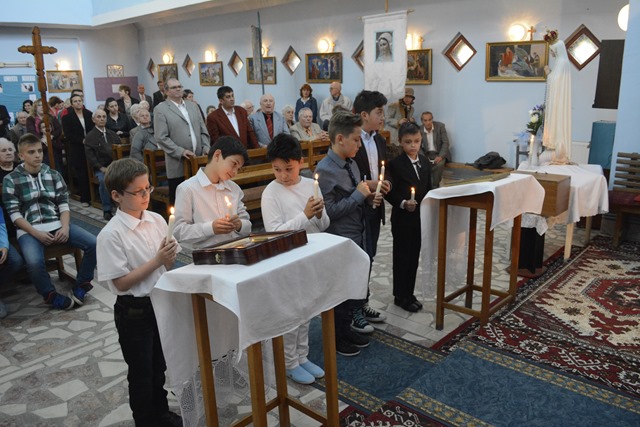 La momentul Cuminecării, şase copii ai Parohiei Reşita, pregătiţi de Rvs. Pr. Pop Ovidiu, au primit pentru prima dată pe Isus Cristos sub forma pâinii şi a vinului.