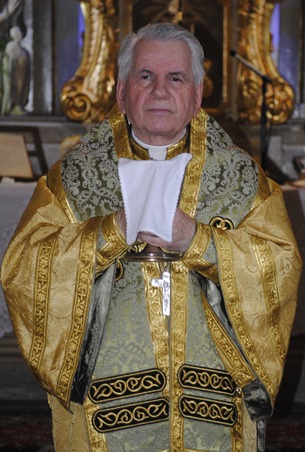 La sosire, P.S. Alexandru a fost întâmpinat cu Sfânta Cruce şi Sfânta Evanghelie de pr. Nicolae Teodorescu, consilier eparhial şi protopop de Timişoara şi de preoţii prezenţi.