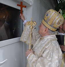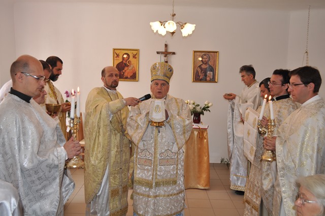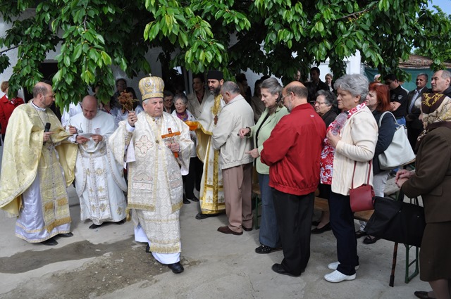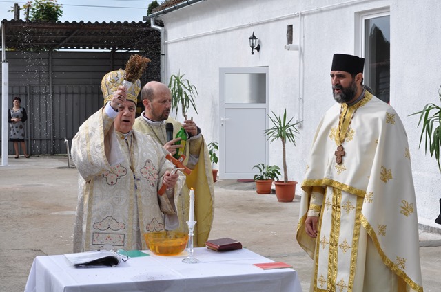 Ceremonia religioasă a început la orele 10.00 cu oficiul sfinţirii apei, după care a avut loc binecuvântarea cu apă sfinţită şi sfântul mir a spaţiilor amenajate şi a credincioşilor. Antimisul de pe masa sfântului Altar conţine moaştele Sfinților Chiril si Metodie (sec IX).