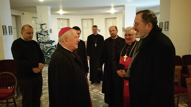 La final părintele Părintele Vasile Bojcsuk, paroh la Peregu Mare, unde este comunitate ruteană greco-catolică, l-au colindat împreună cu familia pe PS Milan Şaşik în limba ucraineană.