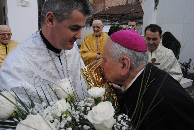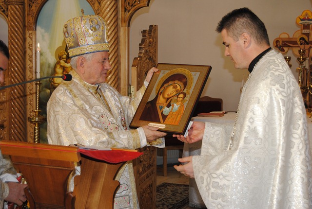 În semn de mulţumire şi de apreciere, pr. paroh Radu i-a dăruit Prea Sfinţitului Alexandru şi Mons. Angelo-Narcis, câte o icoană reprezentând-o pe Prea Curata Fecioară Maria cu pruncul Isus în braţe.