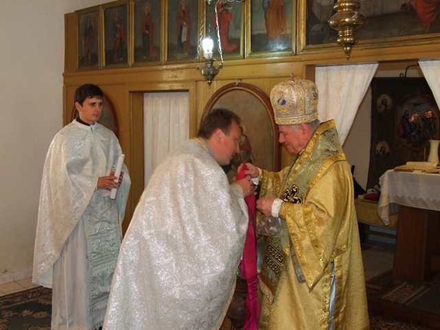 Prea Sfinţia Sa fost întâmpinat de pr. paroh Ioan Brîndău, pr. Ovidiu Marian Brîndău, paroh la Racoviţa, pr. Ovidiu Rănescu paroh la Şanoviţa cu Sfânta Cruce şi Sfânta Evanghelie. La eveniment a participat dl. Neşcu Iosif Ioan, primarul comunei Topolovăţ şi dl. consilier Gheorghe Jucuţ.