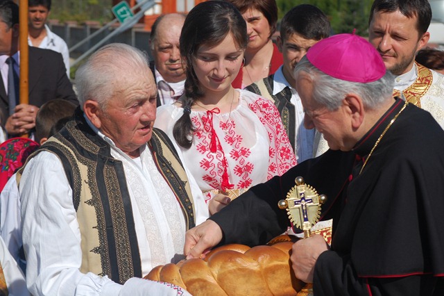 Pr. paroh Inocenţiu a mulţumit tuturor celor prezenţi: Prea Sfinţitului Alexandru, corului, D-lui primar şi părintelui ortodox, corului Catedralei şi credincioşilor săi, care s-au implicat cu multă dragoste în buna desfăşurare a sărbătorii. De-asemenea, a mulţumit Prea Sfinţitului Alexandru pentru acordarea crucii pectorale.