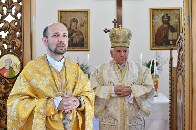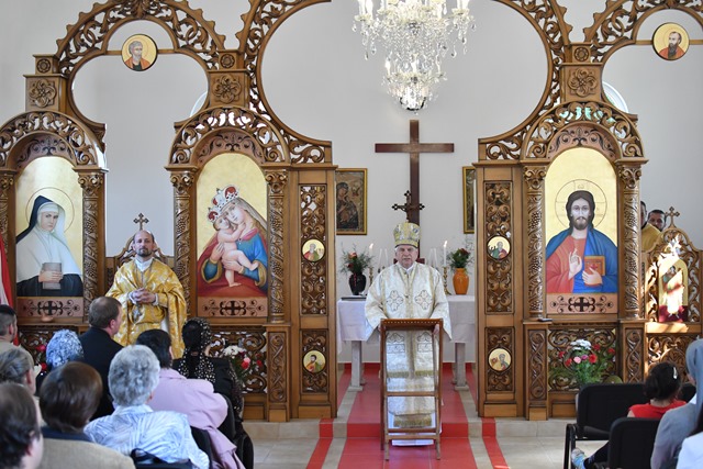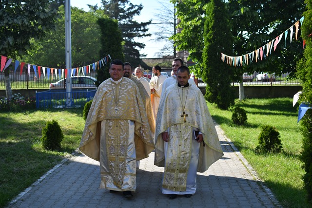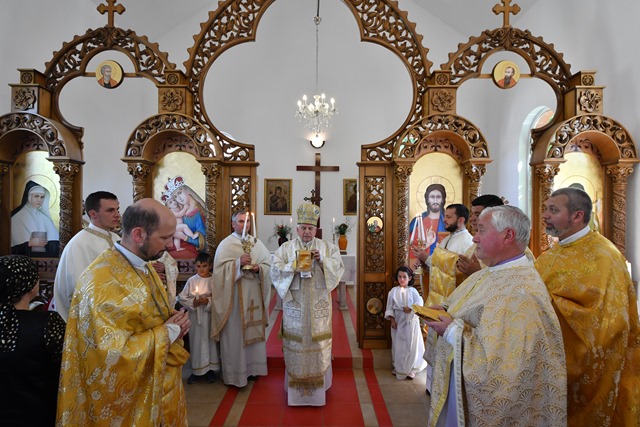 Prea Sfinţia Sa a fost întâmpinat cu Sfânta Evanghelie şi Sfânta Cruce de către Mons. Angelo-Narcis Pop, Vicar General şi parohul acestei biserici.