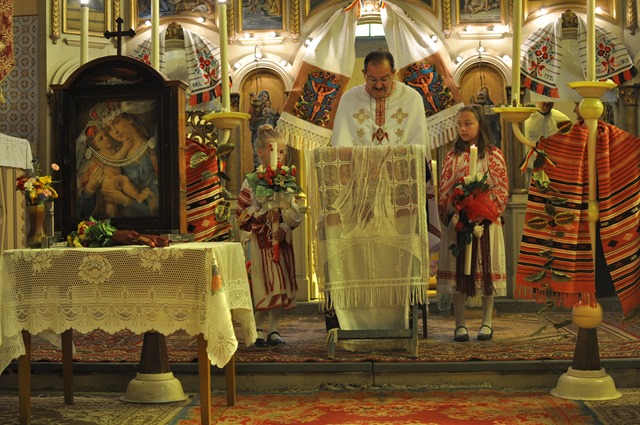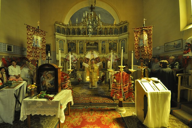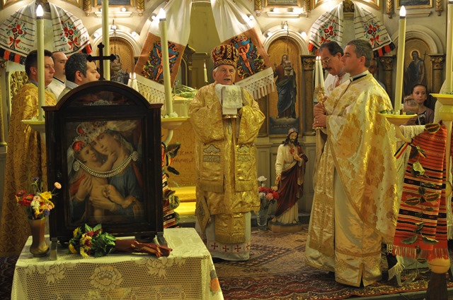 Programul liturgic a început de la orele 10.00 cu rugăciunea Sfântului Rozar în faţa icoanei Maicii Sfinte de la Scăiuş, aşezată în mijlocul bisericii apoi a continuat cu celebrarea Sfintei Liturghii arhiereşti. Alături de Prea Sfințitul Alexandru au concelebrat: pr. Alexandru Ploştinaru, Vicar Judecătoresc, pr. Nicolae Teodorescu, pr. ieromonah Isaac (Jose Vela) de la mănăstirea „Prea Sfânta Treime” Giroc, pr. Ioan Dunca, paroh la Parța, pr. Vasile Chindriş, paroh la Ramna, pr. Iulian Hasciar, paroh la Scăiuş, şi pr. Cosmin Betea, parohul locului. Răspunsurile la Sfânta Liturghie au fost date de corul parohiei din Parţa.