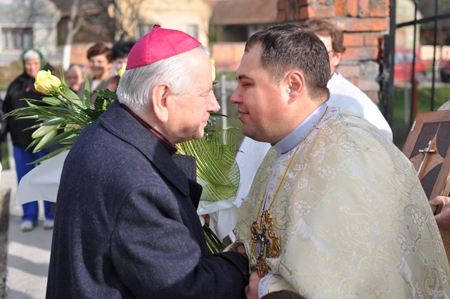 La sosire, Prea Sfinția Sa fost întâmpinat în fața bisericii cu flori, pâine şi sare de pr. paroh, de pr. Prot. Baba Teodor, de copii îmbrăcaţi în porturi populare, de alţi preoţi şi de credincioşii din localitate, dar şi din alte localităţi învecinate.