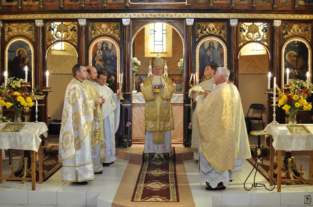 La Sfânta Liturghie, alături de PS Alexandru au concelebrat: Mons. Angelo Narcis-Pop, Vicar general, pr. cons. Baba Teodor, Protopopul Lugojului, pr. Ioan Grad, paroh la Darova, pr. Ioan Brândău, paroh la Budinţ, pr. Vasile Chindriş, paroh la Ramna şi pr. Ovidiu Marian Brîndău, parohul locului. Răspunsurile au fost date de un grup de corişti ai catedralei din Lugoj, dirijaţi de d-l Daniel Iga.