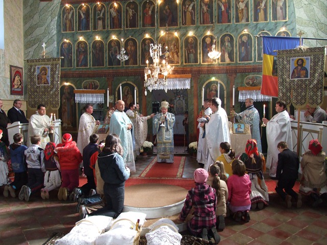 Prea Sfinţitul Alexandru a fost întâmpinat la sosirea în parohie de către un grup de tineri în costume populare, de Rvs. Pr. Radu Vorindan, Protopopul Aradului, de Pr. paroh Gheorghe Tomioagă şi de alţi preoţi.
