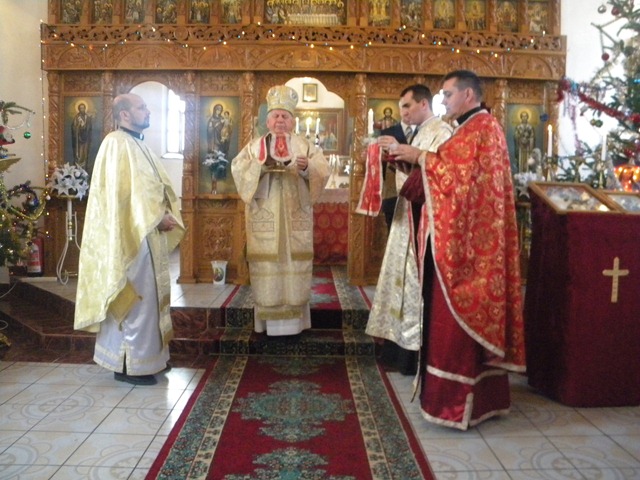 Sfânta Liturghie Arhierească a început la orele 10.00 Alături de Prea Sfinţia Sa Alexandru, în jurul sfintei mese a altarului s-au aflat: Mons. Angelo Narcis Pop şi pr. Doinel Preda. Lector a fost teol. drd. Lucian Mîrza.