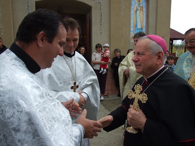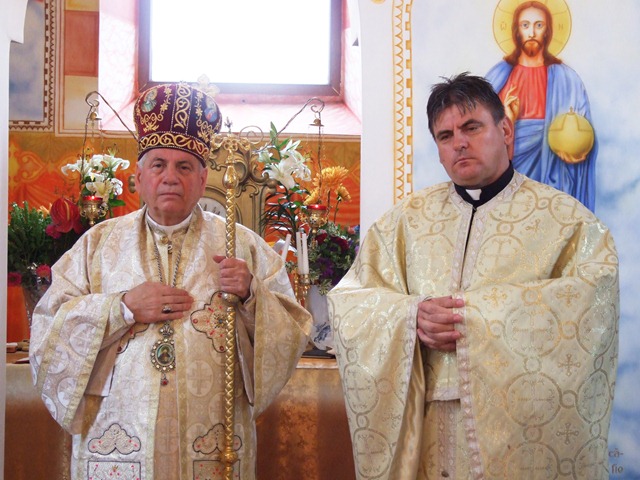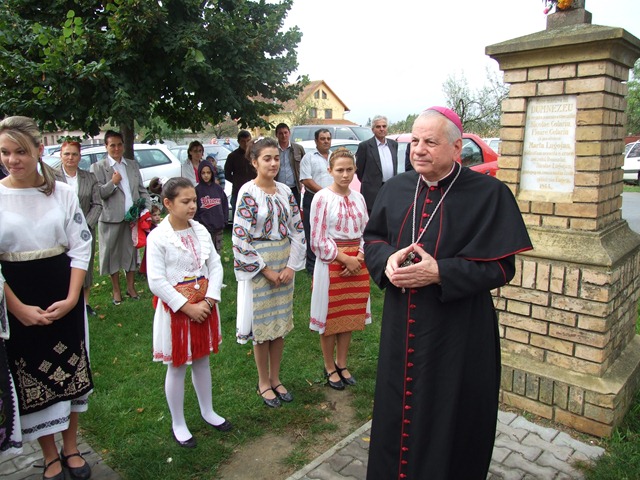 La sosire, Preasfinţitul Alexandru a fost întâmpinat în faţa bisericii cu pâine, sare şi flori, de către un grup de tineri şi copii. Pr. Ioan Dunca, parohul locului, împreună cu credincioşii din localitate, dar şi din alte localităţi. Ceremonia religioasă a început la orele 10ºº. După ceremonia de sfinţire, a urmat Sfânta Liturghie arhierească. Alături de Preasfinţitul Alexandru s-au aflat: Mons. Angelo Pop, Vicar General; pr. consilier eparhial Nicolae Teodorescu protopop de Timişoara, Rvs Ic. Stvr. Dumitru Crişan, paroh de Comloşu-Mare, pr. Ilie Tomoioagă, Paroh de Cărpiniş, şi respectiv pr. Paroh al locului Ioan Dunca.