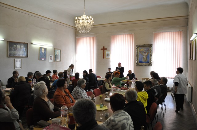 Vizita a continuat la Palatul Episcopal. Pelerinii au fost primiţi în sala mare a palatului unde au fost serviţi cu câte o cafea … PS Alexandru le-a vorbit despre Istoria Eparhiei de Lugoj, cei 9 episcopi predecesori ai Eparhiei, precum şi despre episcopul martir Ioan Bălan şi Ioan Ploscaru care au dat mărturie de credinţă cu preţul vieţii lor. Pr. Daniel, a mulţumit Prea Sfinţiei Sale Alexandru pentru ospitalitate.