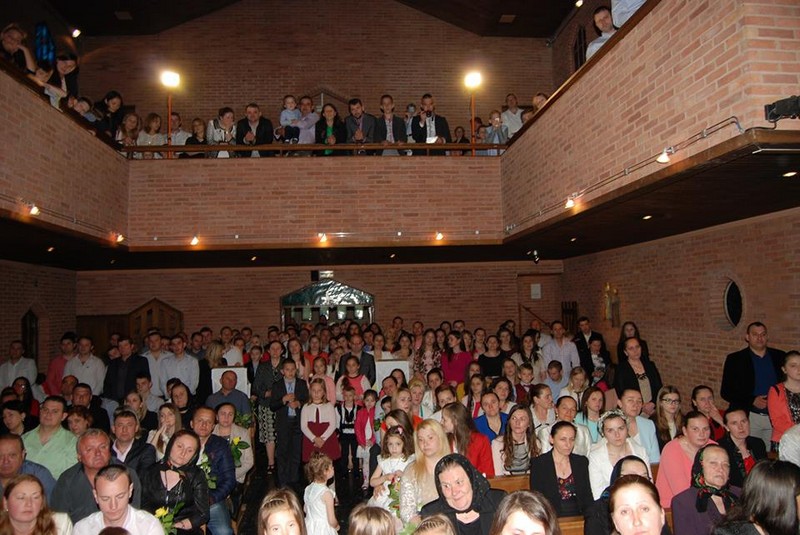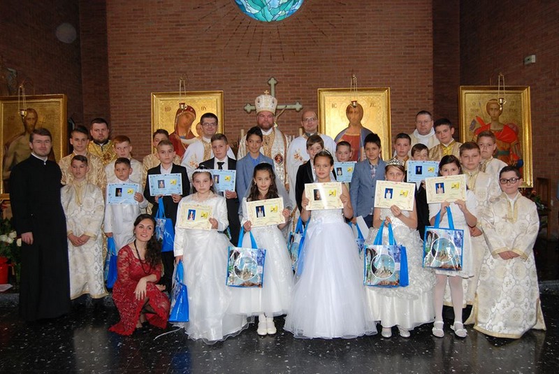 Preasfinţia Sa Vasile Bizău, Episcopul Eparhiei de Maramureș, a fost prezent duminică 24 mai 2015 în mijlocul comunităţii greco-catolice române de la Paris cu ocazia Primei Sfinte Împărtăşanii solemne pentru 13 copii din parohia Sf. Gheorghe, pregătiţi fiind de Adina Buboi și de Flaviu Alexandru Turbui.
