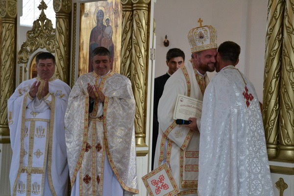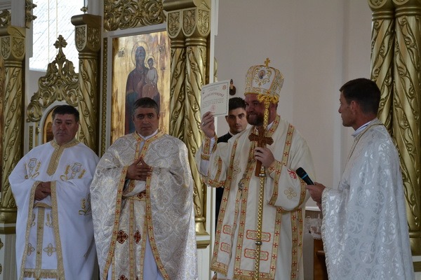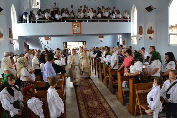 „Se cuvine ca în această sărbătoare să aducem lauda noastră lui Dumnezeu cu toată inima. Pentru că în această zi se cuvine să privim și noi cu ochii inimii tot ceea ce s-a întâmplat în viața acestei comunități, în viața Bisericii noastre, în viața fiecăruia dintre noi. Atunci când avem un eveniment, se cuvine să avem ochii deschiși și să vedem lucrurile cele frumoase și importante pe care le-am parcurs”, a afirmat Preasfințitul Vasile la începutul cuvântului de învățătură, rostit în cadrul Sfintei Liturghii. „Este foarte important pentru noi, credincioșii, să îi cerem lui Dumnezeu harul de a vedea cu ochii Lui… În ochii lui Dumnezeu, realitățile sunt mult mai mari, mult mai profunde și mult mai frumoase”, a spus Ierarhul. Și a continuat făcând un excurs în istoricul parohiei și îndemnând comunitatea parohială de aici să păstreze vii în memorie pe toate acele persoane și momente care au marcat-o de-a lungul timpului și i-au dat încredere, au întărit-o în credință. După primii ani de libertate (începutul anilor `90) în care s-a celebrat Sfânta Liturghie prin case și la care credincioșii participau cu mult zel, în anul 1996 a fost numit paroh părintele Codrea. De atunci, „O perioadă deosebit de rodnică! Aici, în parohia dumneavoastră, s-au construit atât de multe lucruri frumoase: biserica, casa parohială, centru pentru tineret; s-a închegat și mai bine comunitatea, care să rămână ca o familie, o familie în Hristos… Pentru toate acestea se cuvine să-i mulțumim lui Dumnezeu, se cuvine să fim bucuroși, se cuvine să creștem și mai mult în speranță pentru ceea ce urmează pentru că, urmându-L îndeaproape pe Mântuitorul Hristos, de fiecare dată vom avea acelaș răspuns: După credința voastră fie vouă!”, a spus Preasfințitul.