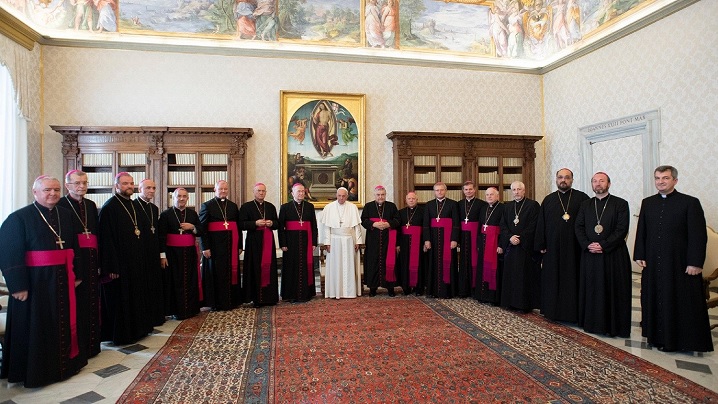 Papa Francisc i-a primit în audiență joi, 8 noiembrie a.c., pe episcopii catolici din România, aflați la Roma cu ocazia vizitei „ad Limina Apostolorum”.