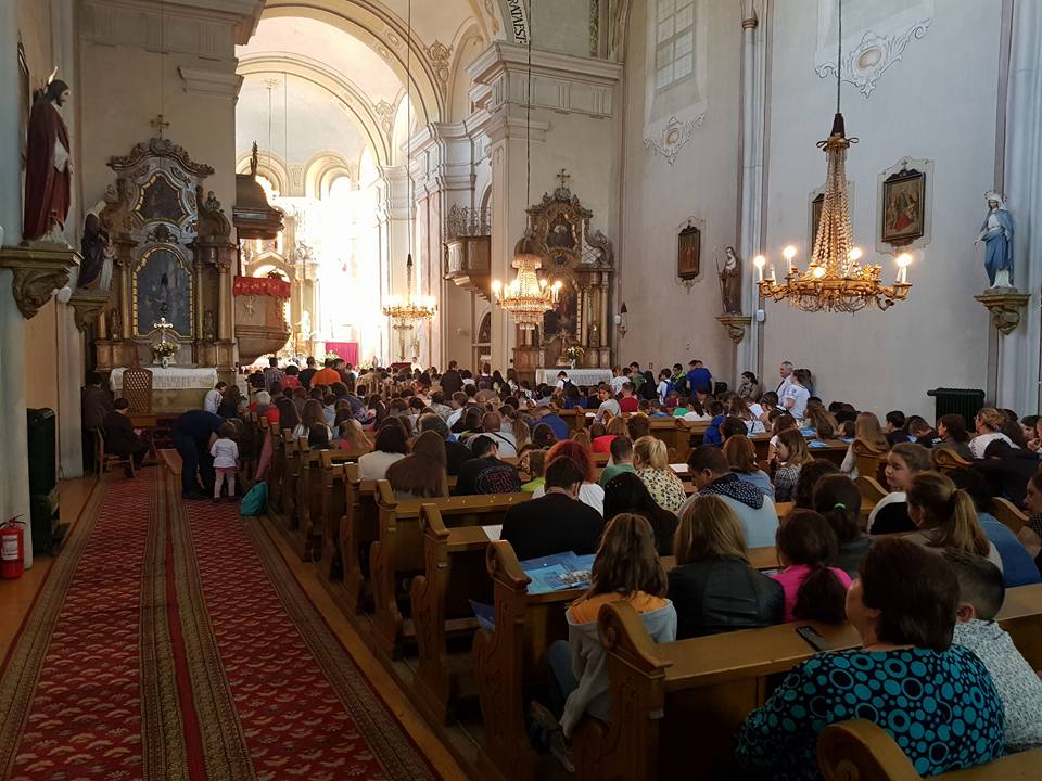 Sute de copii și tineri greco-catolici, însoțiți de parohii lor, au fost prezenți astăzi, 5 mai, la Sibiu, cu ocazia întâlnirii anuale a copiilor și tinerilor din Arhieparhia de Alba Iulia și Făgăraș. Evenimentul a fost organizat în acest an de către Protopopiatul greco-catolic Sibiu și s-a desfășurat în Parohia Sibiu I (Biserica Ursulinelor).
