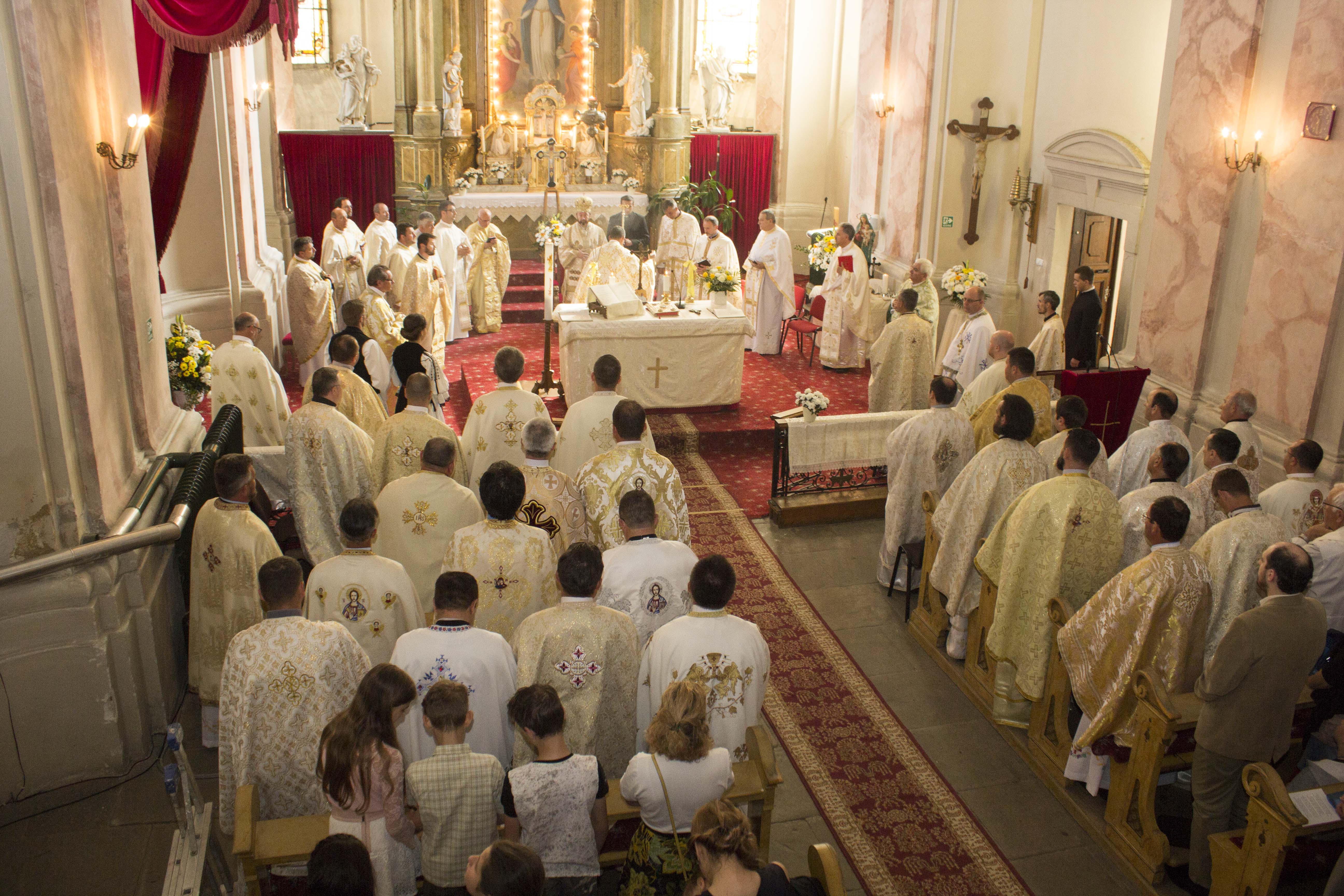Întâlnirea a început la ora 10.00 cu Sfânta Liturghie Arhierească celebrată în biserica parohială de către Preasfinția Sa Claudiu, Episcopul Curiei Arhiepiscopiei Majore. Alături de Ierarh a concelebrat un număr mare de preoți.
