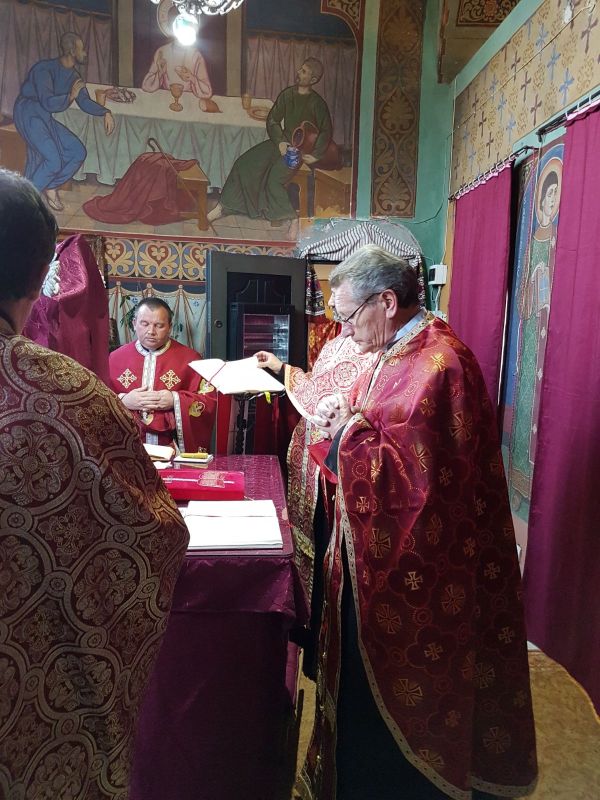 Oficiul religios a început la ceasul vecerniei și a împletit rugăciunea Sfântului Grigorie Dialogul cu Sărbătoarea Buneivestiri.