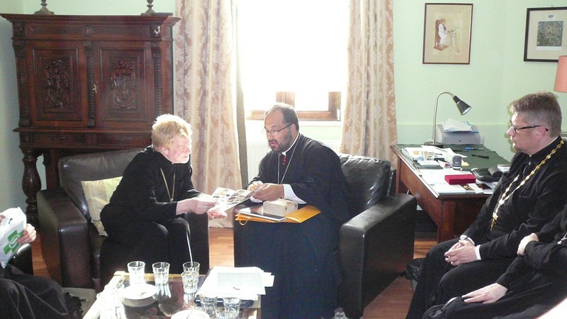 În după masa zilei de 8 mai Preasfinția Sa Mihai i-a avut ca oaspeți pe Înalt Preasfințitul Mitropolit Ambrozie, capul Bisericii Ortodoxe Finlandeze, și grupul de protopopi și preoți din Eparhia de Helsinki care-l însoțeau.