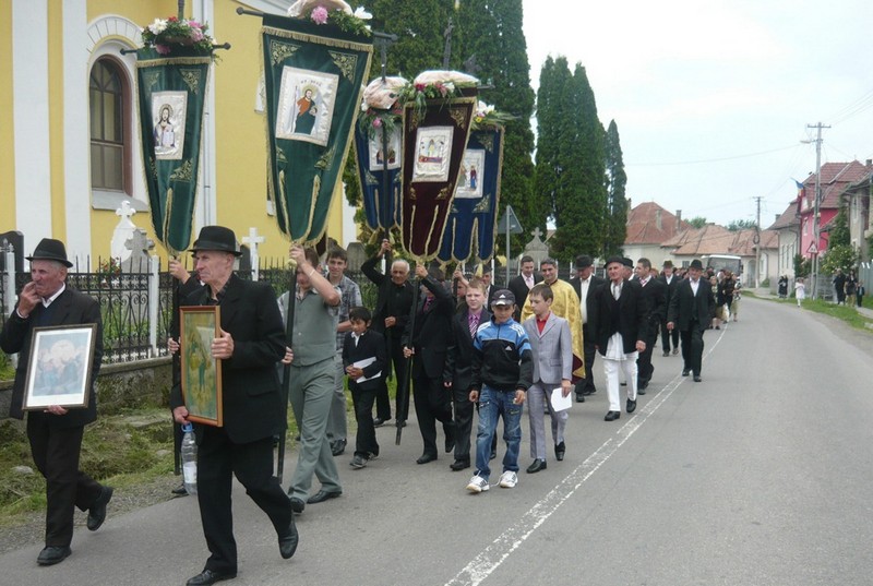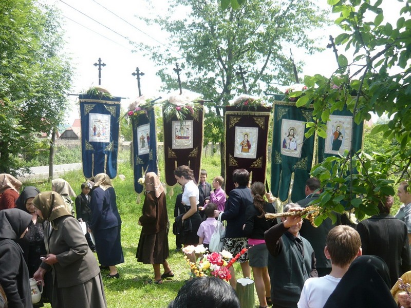 După obiceiul locului, purtând praporii cu colaci şi cununi de spice şi flori, comunitatea credincioşilor s-a deplasat după terminarea Sfintei Liturgii la o grădină situată la marginea comunei, unde s-a savărşit sfințirea apei si binecuvantarea apelor, grădinilor şi semănăturilor, pentru a fi protejate de Spiritul Sfânt coborât de la Tatăl Ceresc, prin mijlocirea Bunului Mântuitor.