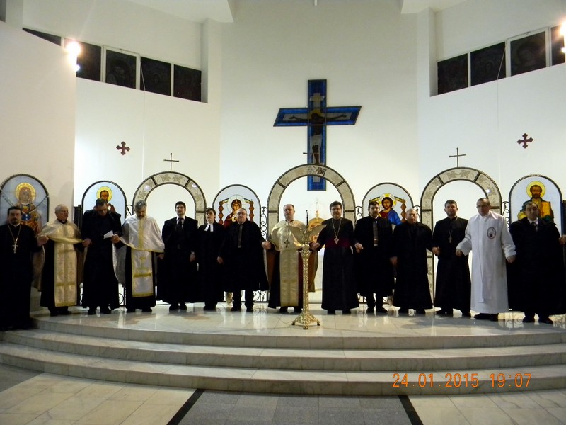 Preotii si pastorii participanti au intrat in biserica la ora 18.00, unde dupa un frumos cuvant de precizare a rostului intalnirii “talcuit” de parintele protopop Flavius Florea, a urmat rostirea rugaciunilor, alternate de interventia corului cu muzica bisericeasca selectata adecvat momentului.