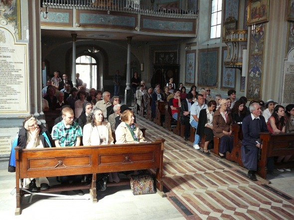 Preasfinţitul Petru, episcopul romano-catolic de Iaşi, a rostit un cuvânt de bun venit adresat Episcopului Mihai şi întregii comunităţii greco-catolice. Preasfinţia Sa Mihai a mulţumit gazdei pentru tot sprijinul pe care Dieceza de Iaşi împreună cu păstorul ei l-a acordat Bisericii Române Unite, Greco-Catolice în timpurile grele ale persecuţiei, precum şi pentru posibilitatea de a avea o Sfântă Liturghie după rânduielile proprii în ultima duminică a fiecărei luni.